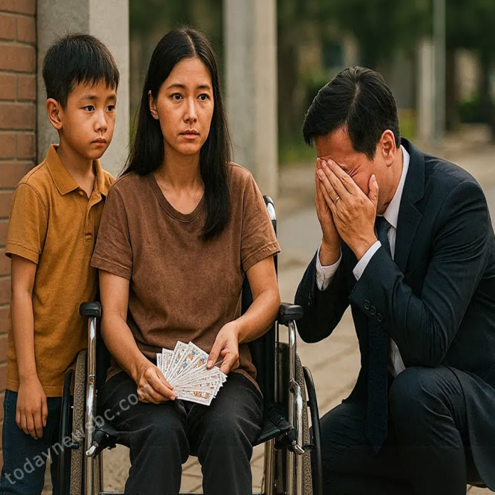 Một người phụ nữ gầy guộc, ngồi trên chiếc xe lăn cũ kỹ, khuôn mặt hốc hác, đôi mắt sâu thẳm nhưng vẫn toát lên nét quen thuộc. Trên tay cô là xấp vé số đã úa màu, được gói cẩn thận bằng túi nilon. Gần đó là một bé trai chừng bảy tuổi, gầy gò nhưng ánh mắt lanh lợi, đang cầm hộp cơm chia từng miếng cho mẹ.