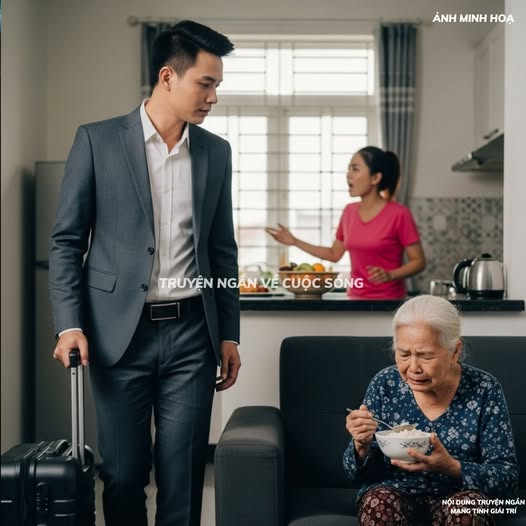 Người mẹ già của anh, bà Mười, đang ngồi một mình, co ro trên ghế sofa trong phòng khách. Bà gầy gò, nhỏ bé, mái tóc bạc phơ rũ xuống. Trên tay bà là một bát cơm nguội, bà đang ăn vội vàng từng thìa một. Nước mắt bà lăn dài trên gò má khắc khổ, rơi lã chã xuống bát cơm. Minh chết lặng. Anh chưa kịp hiểu chuyện gì đang xảy ra, chưa kịp cất tiếng gọi mẹ, thì nghe thấy giọng Thảo vang lên từ trong bếp, đầy vẻ khó chịu và lạnh lùng: