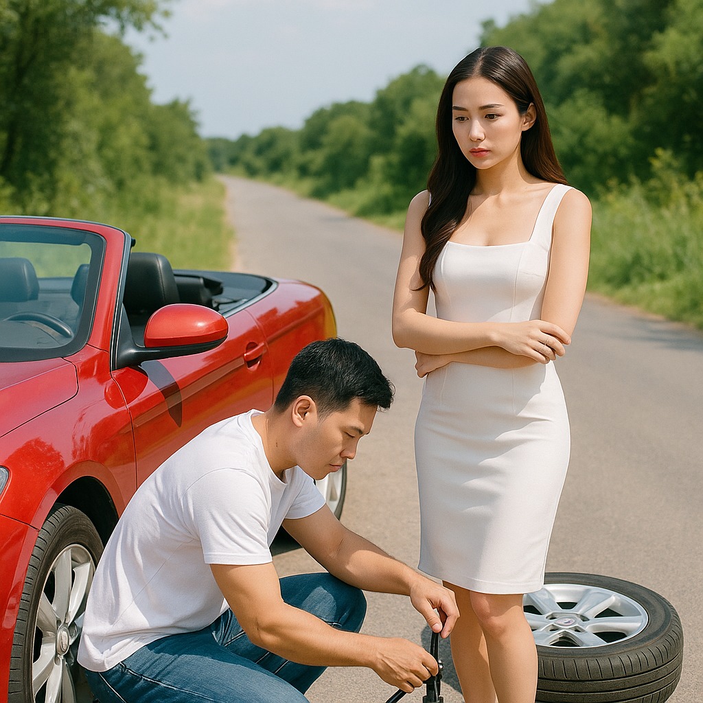 – Cô cần giúp không? Tôi rành sửa xe một chút.