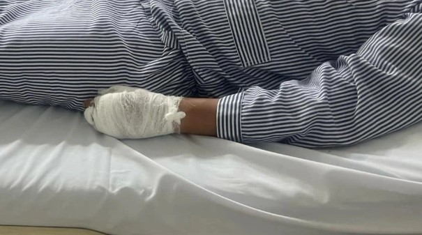 Tay anh Hải bị thương nặng do đập vỡ cửa kính để bơi ra ngoài khoang tàu (Ảnh: Nhân vật cung cấp).